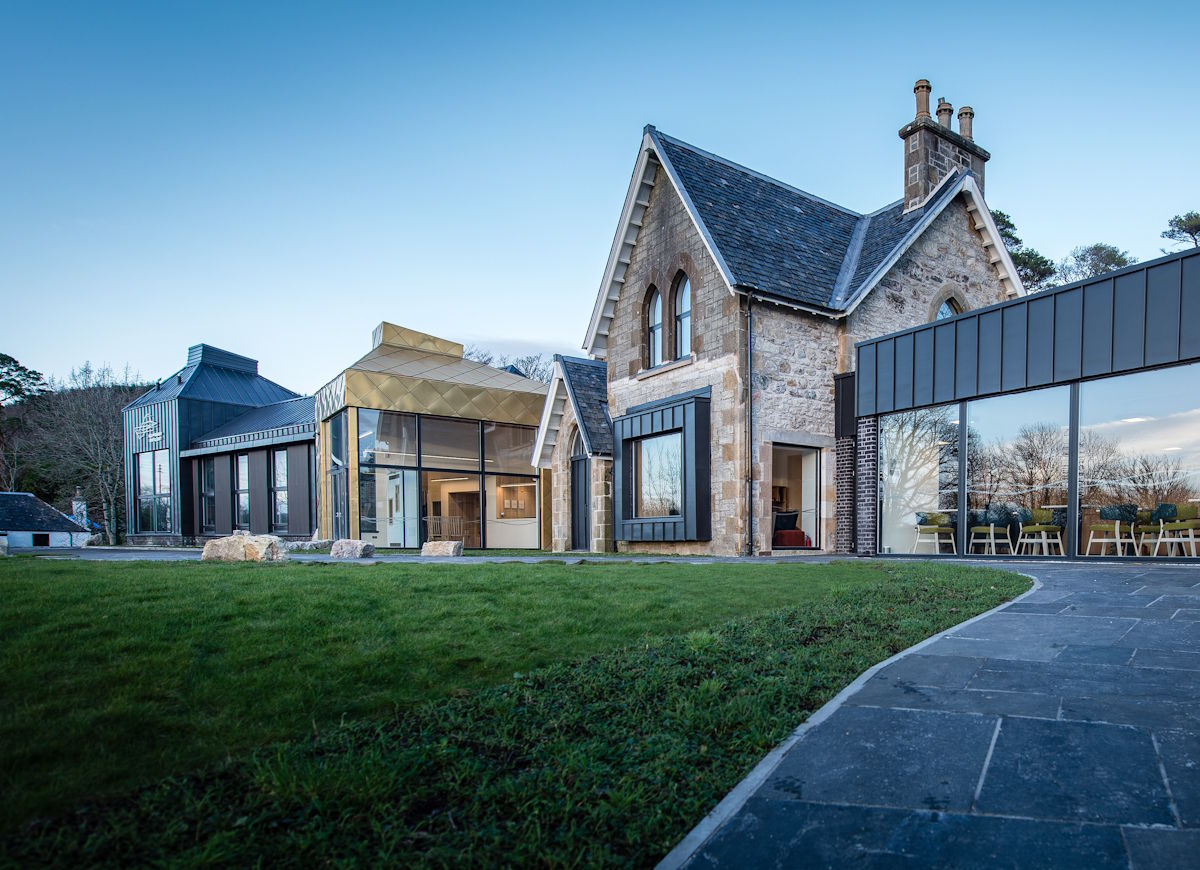 Das Brennereigebäude entstand aus den Mauern des historischen Borodale House, das aufwendig restauriert und um moderne Produktionsanlagen erweitert wurde. Große Panoramafenster öffnen den Blick auf das Meer und die Cuillin Hills – und spiegeln den Anspruch der Gründer wider: Transparenz, Offenheit und eine enge Verbindung zu Natur und Herkunft.